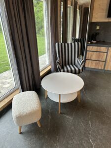 Прекрасний відпочинок на вихідні (були в двох з чоловіком, 3-х місний будинок). Дійсно затишна садиба, свіже повітря, чудова атмосфера.В будиночку всі зручності, сучасний дизайн,запах дерева, хороший холодильник.Мангал зона укомплектована усим необхідним, приємно було готувати. Спонтанно захотіли попаритись в чані.Все організували, без проблем. Не нав"язливі хозяїни. Чітко , все тільки по справі. Релакс для душі, тіла і емоцій.Рекомендую.